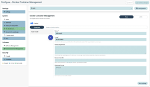Then the first step is to define from which repository the containers are downloaded. If this is not defined the system uses docker hub. Please insert your hub URL and credentials in the according tab to connect the repository.