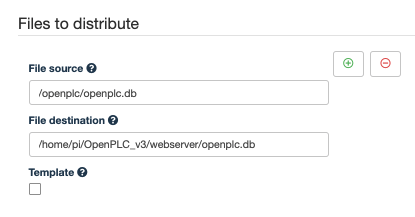 We call this file “blank_program.tmpl” to indicate that it is a template and upload it to the qbee file manager. The ending is just for readability, it will be written as indicated in the destination path. There it needs to be written as “blank_program.st” as defined in our OpenPLC settings. But this file is first created on the target edge device and the qbee agent will replace the key with the value (in this case 4000ms). So the device will see a “blank_program.st” with the correct value in there. The next thing we need to do is to change the last file distribution and allow templating as seen below: