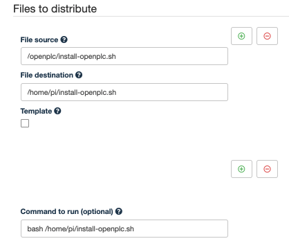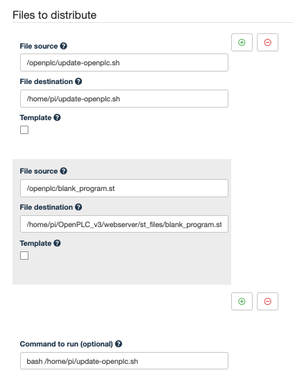 As a last step we upload a shell script called “update-openplc.sh” that compiles any new blank_program.st automatically by calling a script available in OpenPLC. As explained previously, the qbee agent understands if a new file is uploaded to the file manager. Then it will be transported to all devices in scope and the script below is invoked and run through the “command to run” bash /home/pi/update-openplc.sh which will be executed after the file distribution.